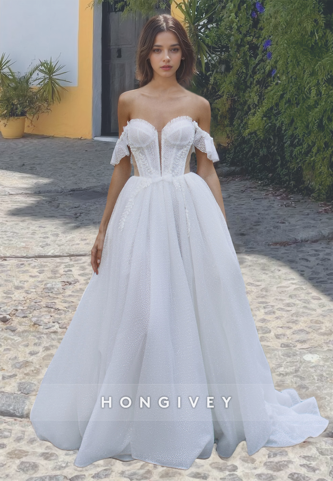 Sexy Applique Off-Shoulder Sheer Back Tulle Wedding Dress 2025 New HONGIVEY