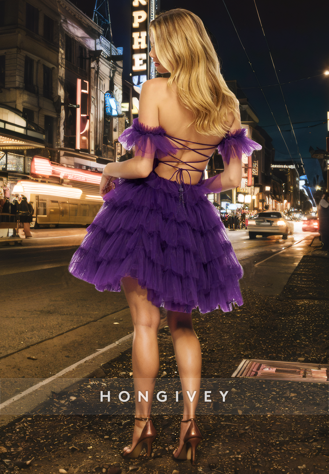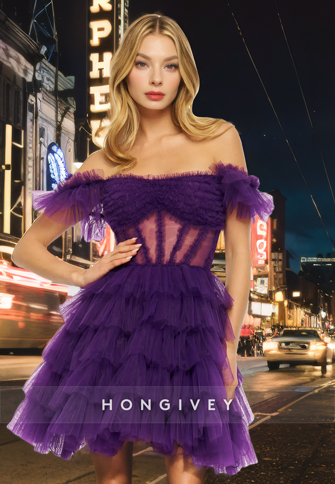 Off-Shoulder Tulle A-Line Illusion Empire Short Party Homecoming Dress
