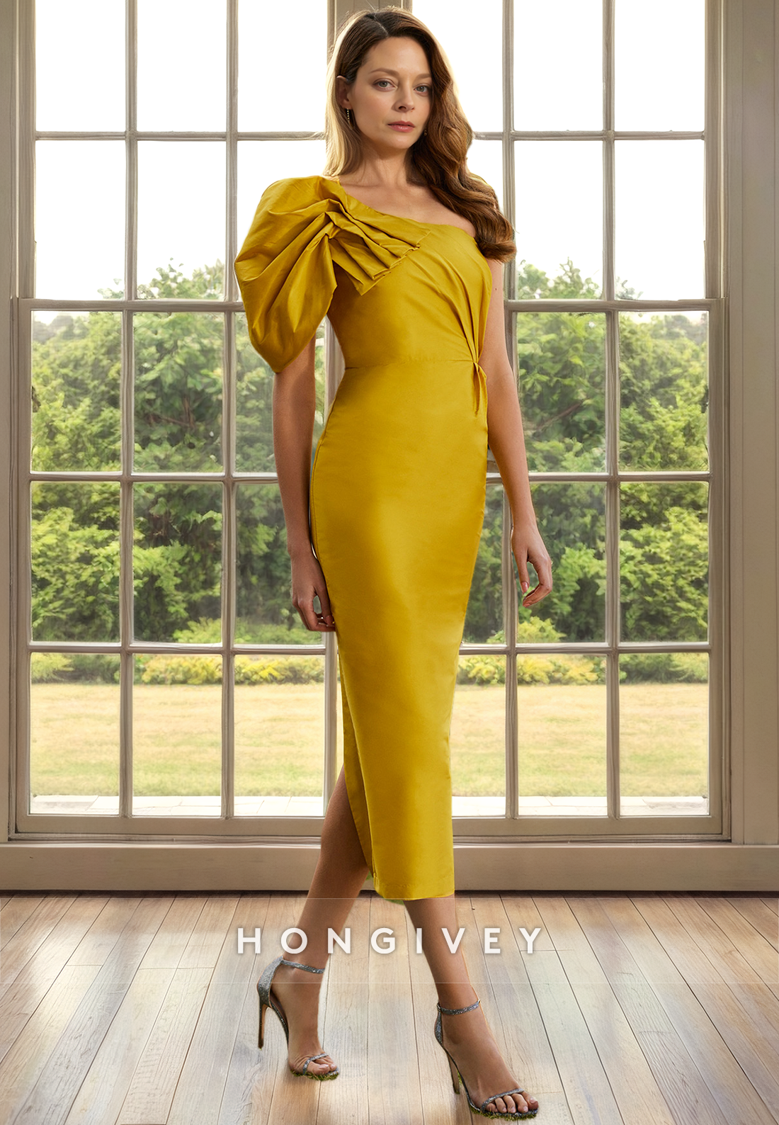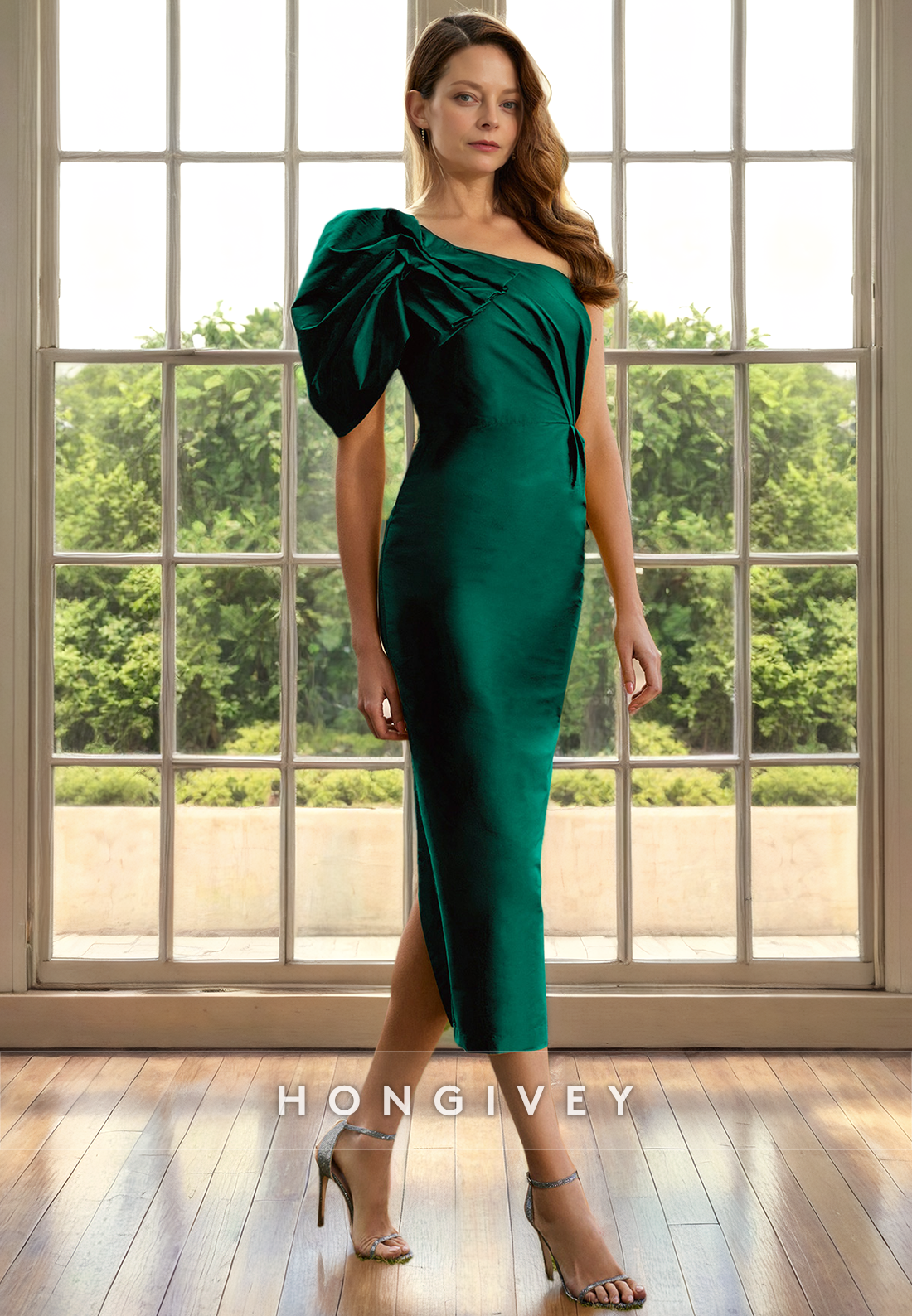 Satin Fitted One Shoulder Empire Mother of the Bride Dress