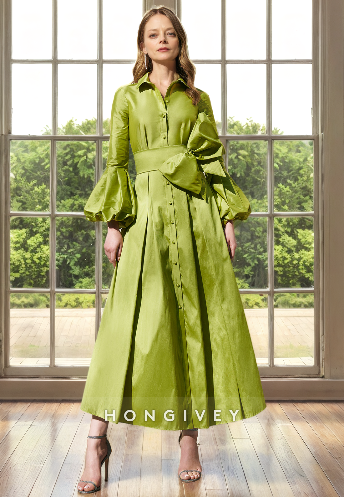 Satin A-Line Long Sleeves Belt Mother of the Bride Dress