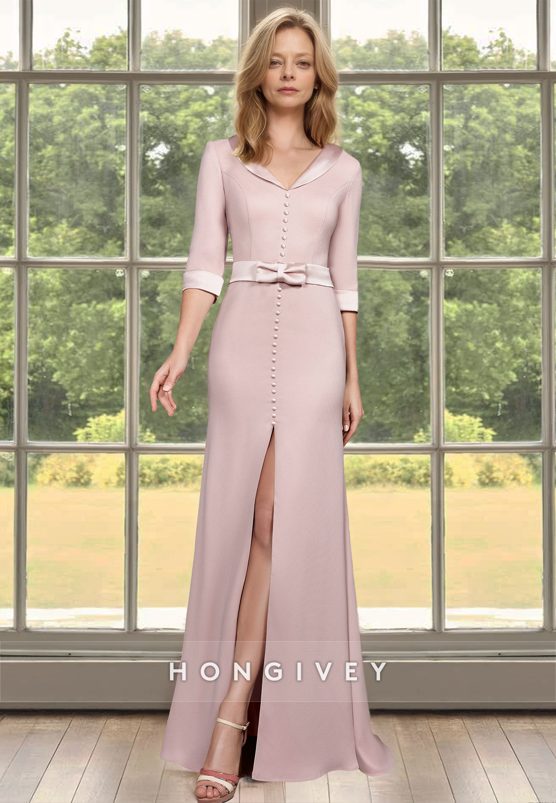 Half Sleeves with Front Slit Formal Long Mother of the Bride Wedding Guest Dress