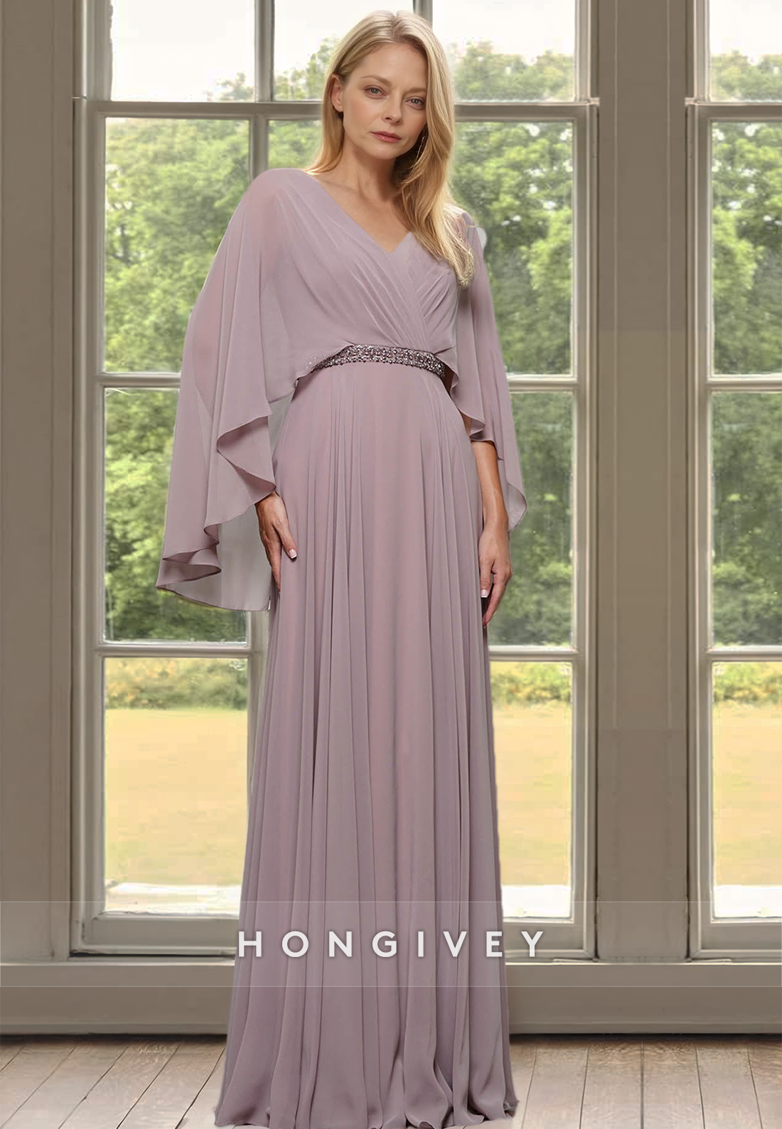 Chiffon Plus Size Long Sleeves Mother of the Bride Wedding Guest Dress