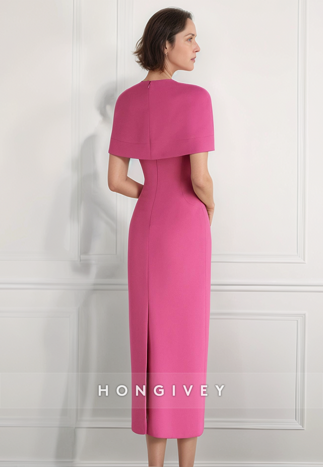 Sheath Tea-Length Formal Fuchsia Taffeta Cocktail Dress Zipper Shawl Simple Mother of the Bride Dress