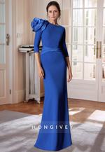 Royal Blue Shoulder Flower Formal Sheath Floor-Length Satin 3/4 Sleeve Mother of the Bride Dress
