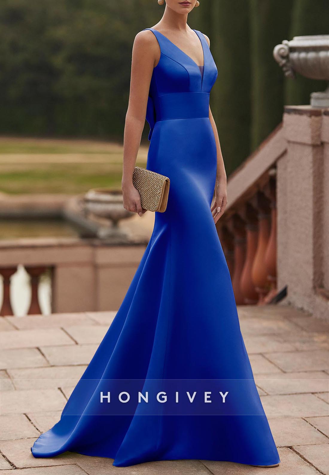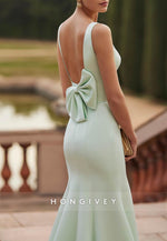 This Low Back Bowknot Trumpet Evening Gown is designed to impress. With its elegant V-neck and stunning trumpet silhouette, this gown is perfect for any formal occasion. The low back adds a touch of allure while the bowknot detail and satin fabric give it a luxurious feel. The pleated design adds texture and movement, making it a standout piece. Be the center of attention in this beautiful evening gown.