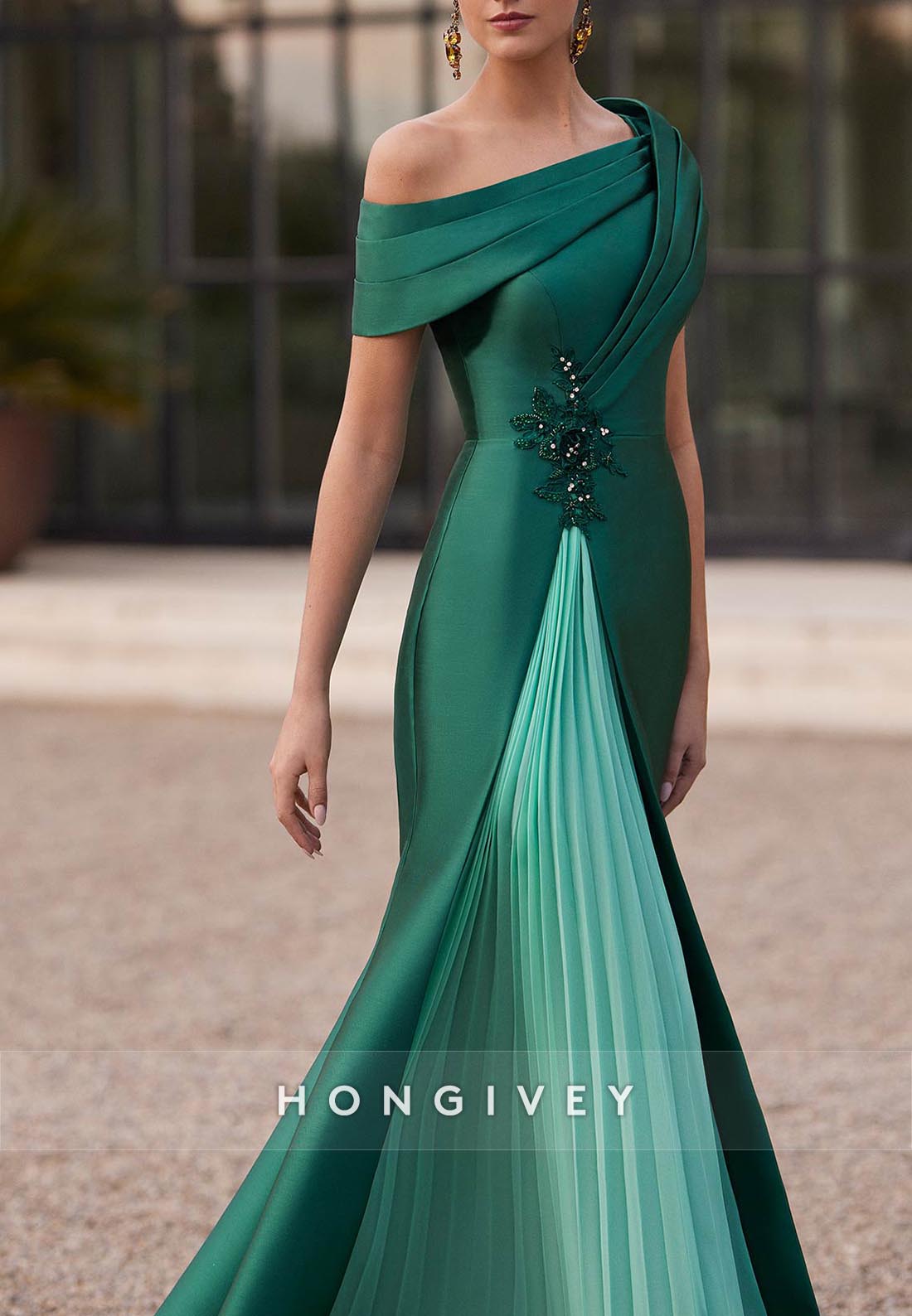 Appliques Lace Evening Gown Trumpet Sweep Train One Shoulder Ruffles Mother of the Bride
