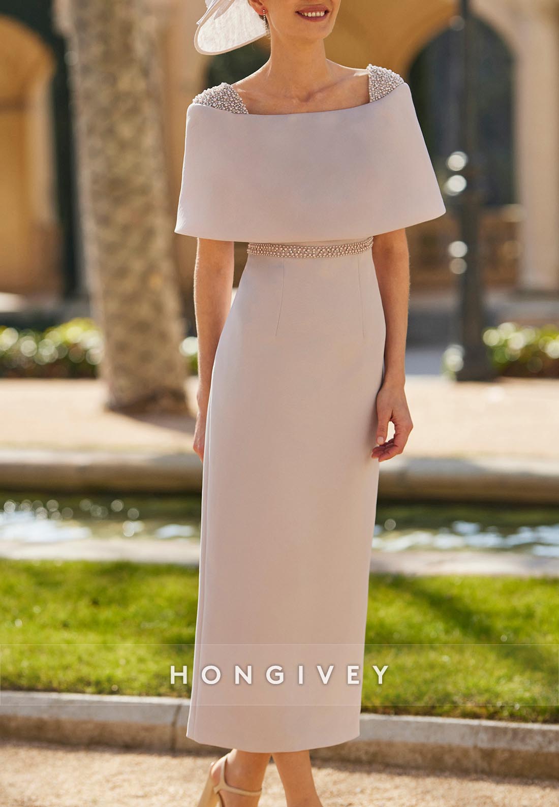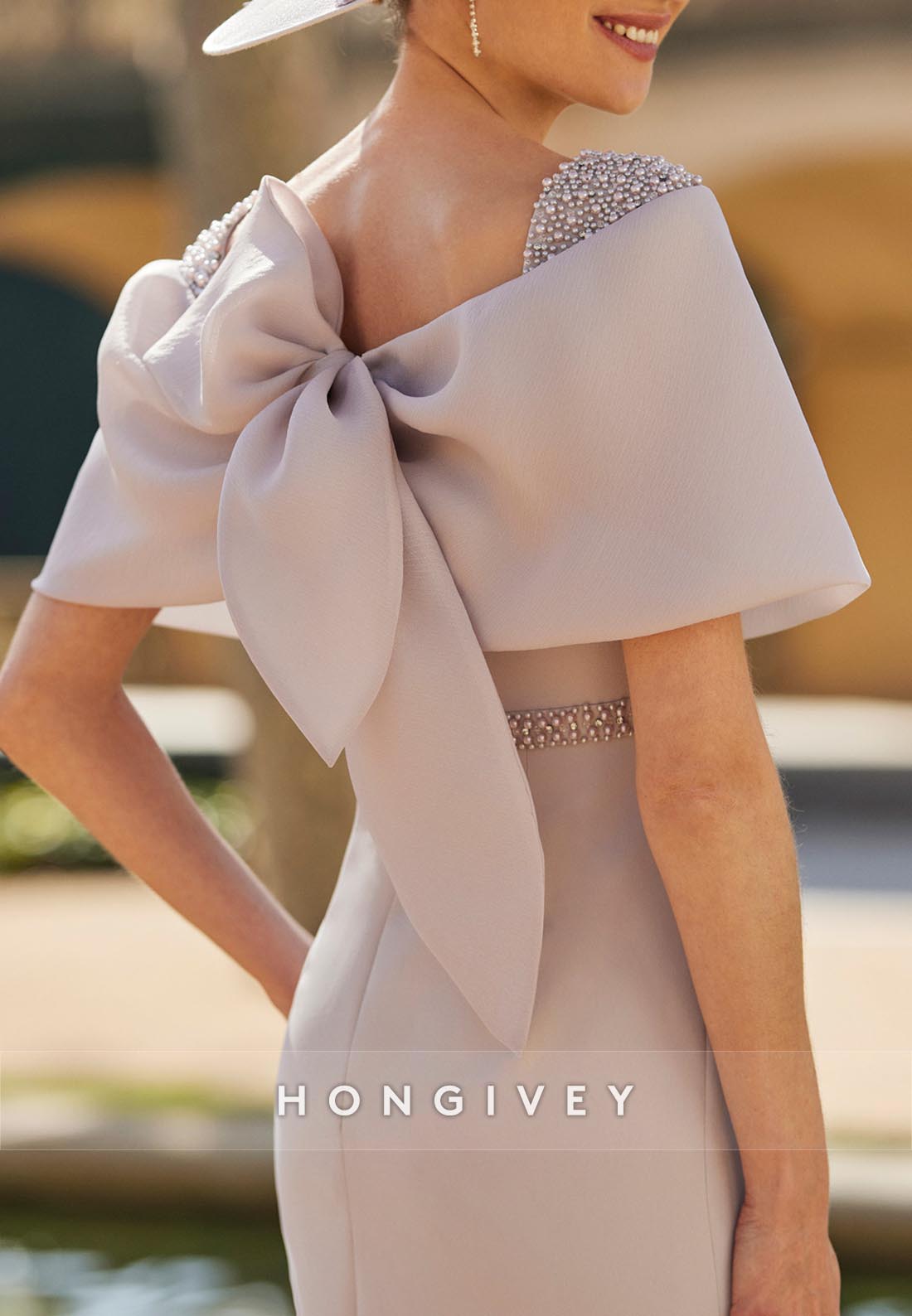 Shawl Ankle-Length Bowknot Satin Column Mother of the Bride