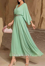 Elevate your special occasion ensemble with this sophisticated V Neck A-Line Mother of the Bride Dress. The flattering tea-length silhouette offers timeless elegance while the delicate flutter sleeves provide graceful movement and modest coverage. Expertly tailored with a feminine V-neckline that frames your décolletage beautifully, this refined dress ensures you'll look poised and distinguished as you celebrate your daughter's momentous day.
