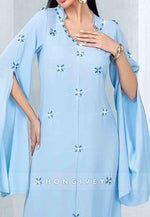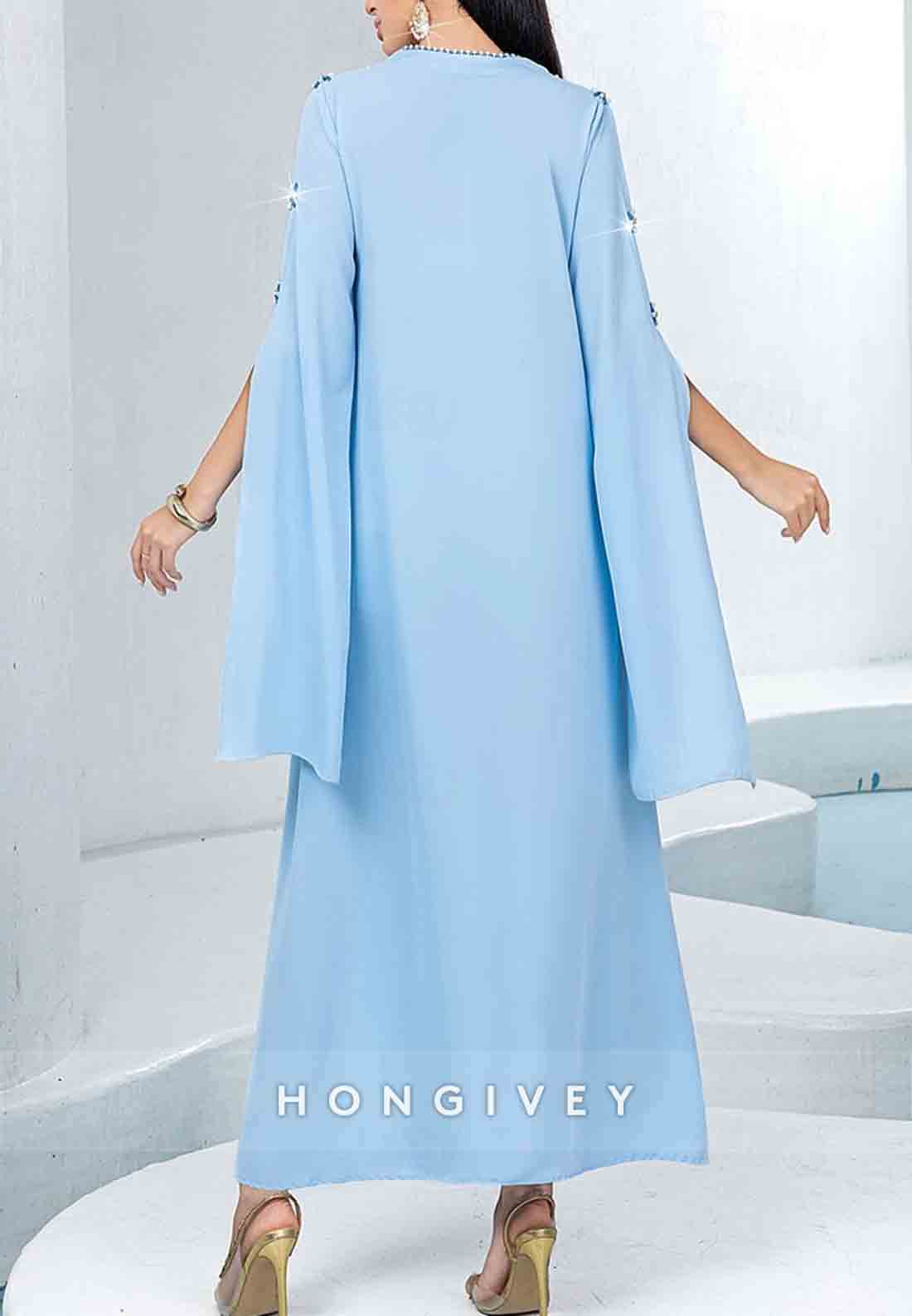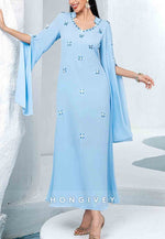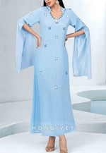 This refined tea-length column dress embodies sophisticated elegance for the mother of the bride. Meticulously pleated fabric creates a slimming silhouette while delicate rhinestone embellishments add a subtle luminous quality. The thoughtfully designed proportions offer both comfort and grace, ensuring you maintain a distinguished presence throughout your daughter's momentous celebration.