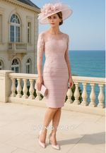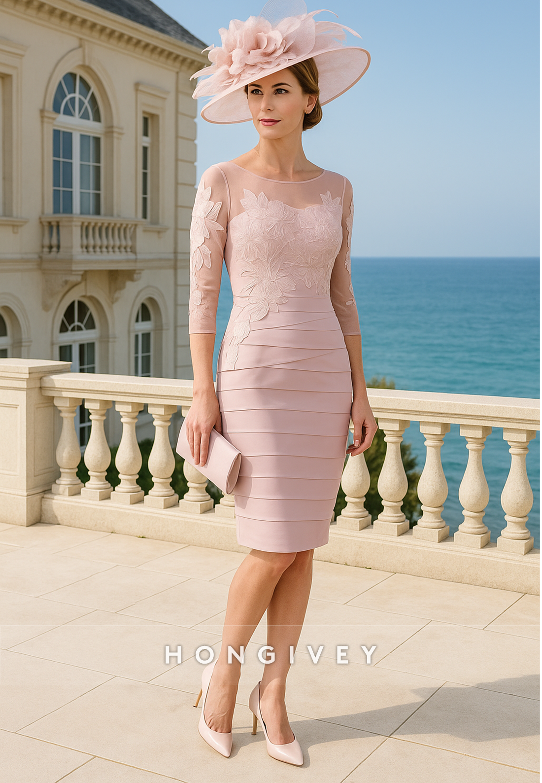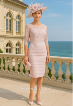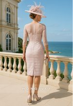 Blush Knee-Length 3/4 Sleeve Cocktail Dresses Illusion Neck Mother of the Bride Dresses