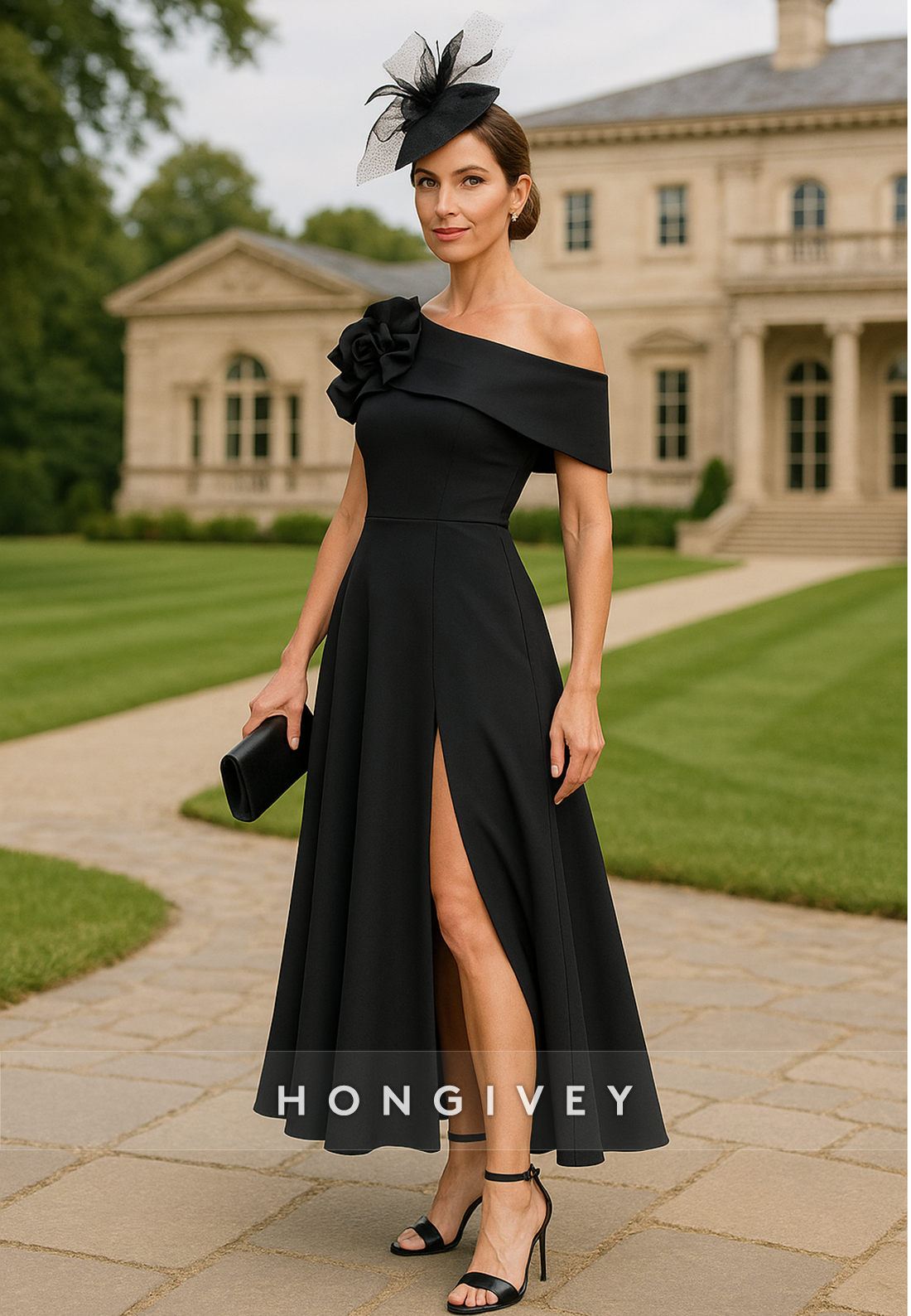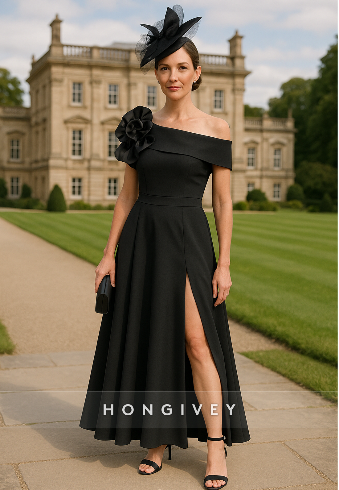 One Shoulder Flower A-Line Side Slit Pleated Ankle-Length Mother of the Bride Dresses