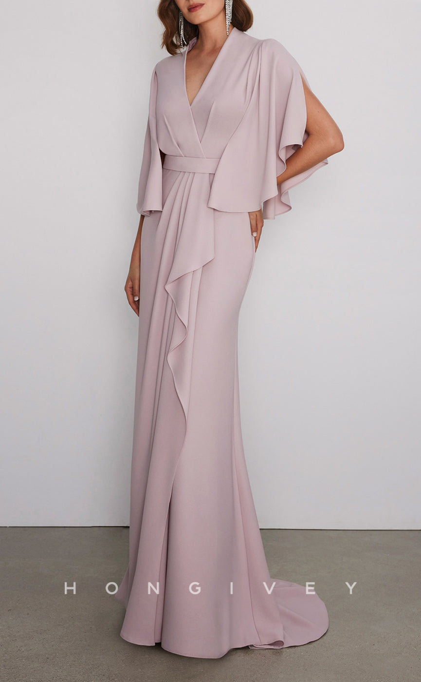 HM260 - Casual V-Neck Empire Ruffled Mother of the Bride Dress
