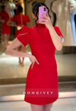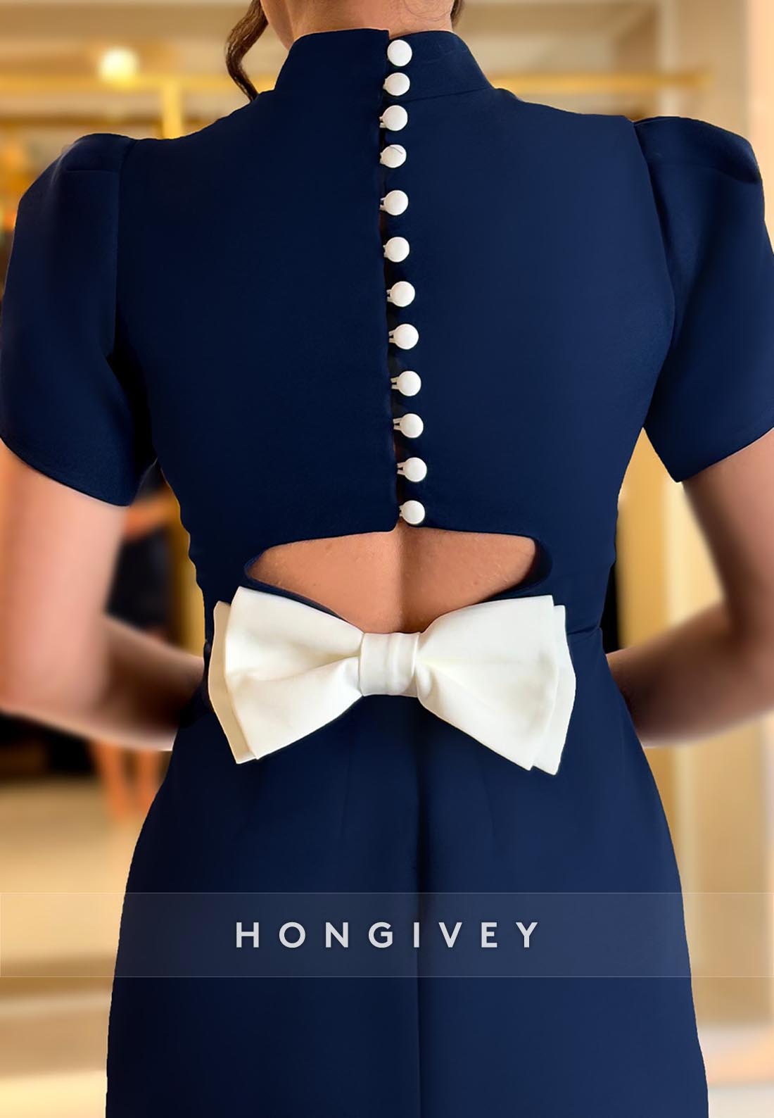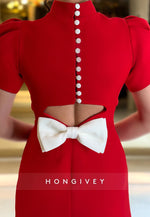 Indulge in luxury with our Bowknot Back Hole Sheath High Neck Short Sleeve Mini Party Dresses. The flawless design showcases a charming bowknot back hole, flattering sheath silhouette, and sophisticated high neck. Embrace the latest fashion trends and make a statement at any party.