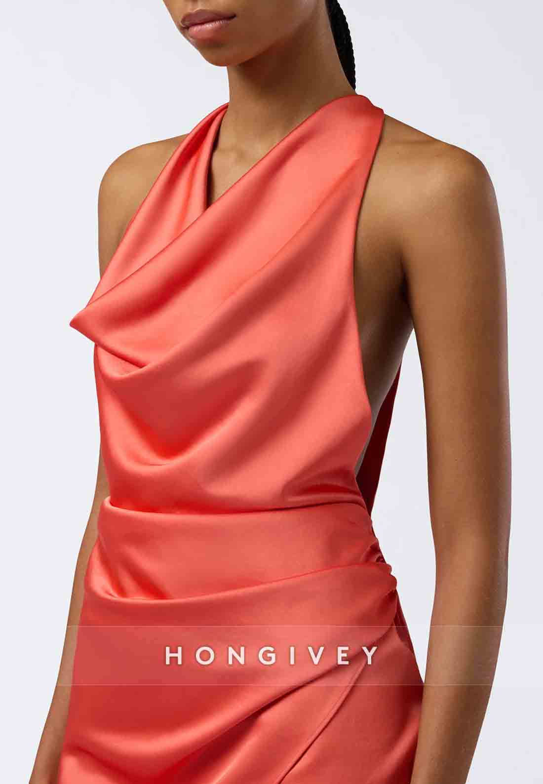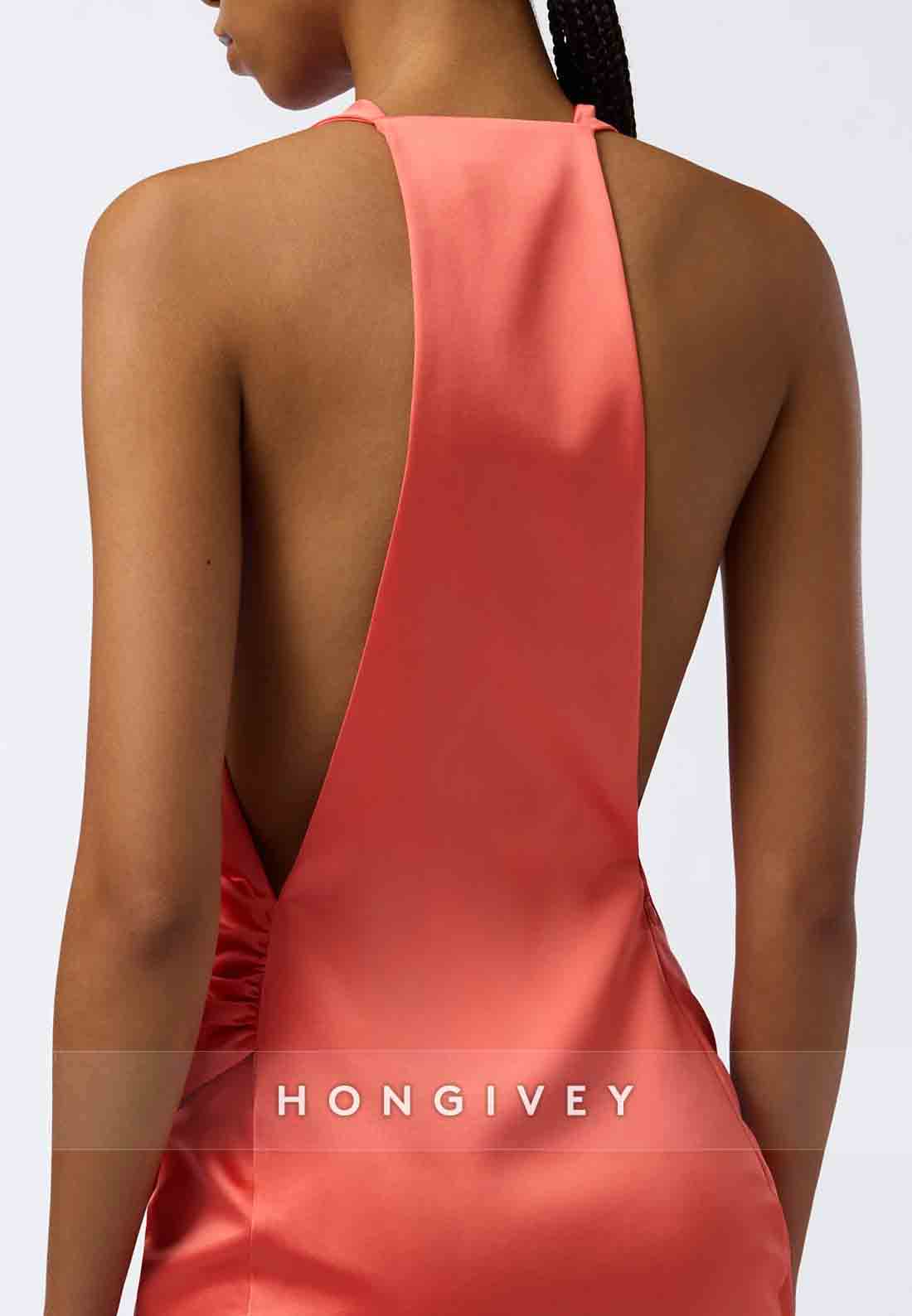 Halter Sleeveless Pleated Sheath Cowl Neck Mini Homecoming Dresses