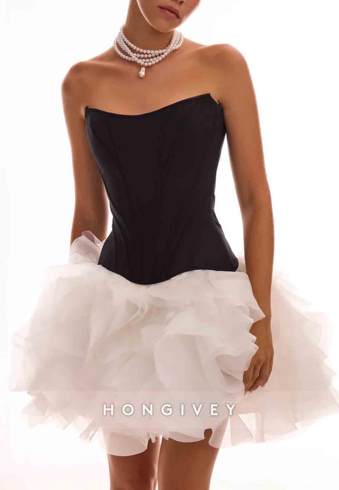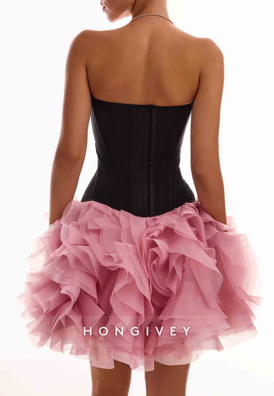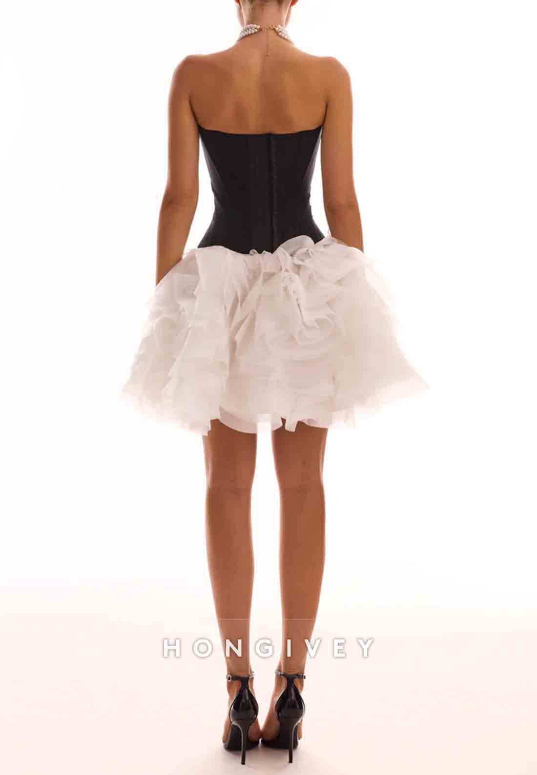 Strapless Smart Heart-shaped Low-waist Black Fitted Corset Party Short Homecoming Dresses