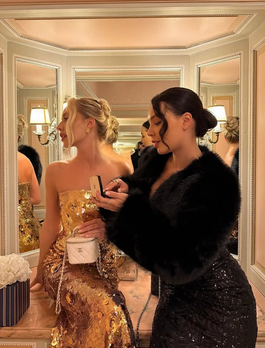 Glod Glitter Strapless Sleeveless Sequins Mermaid Floor-Length Evening Dress