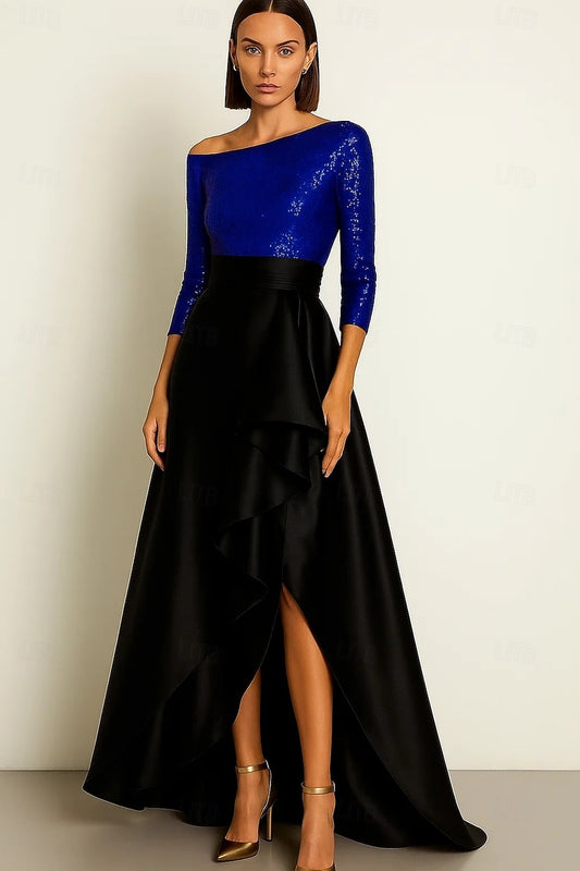 Sparkle Sequins A-Line 3/4 Sleeve Floor-Length Evening Dress