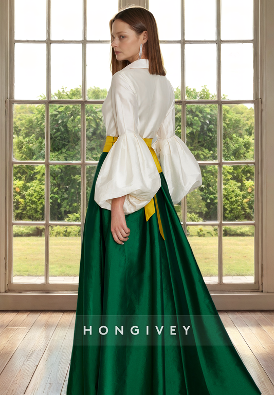 HM317 - Chic Satin A-Line Two Tone With Side Slit Floor-Length Formal Cocktail Dress