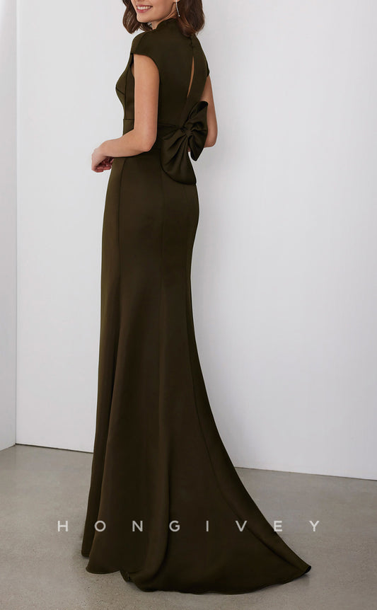 HM299 - Scoop Half Sleeves Satin Empire With Slit Mother of the Bride Dress