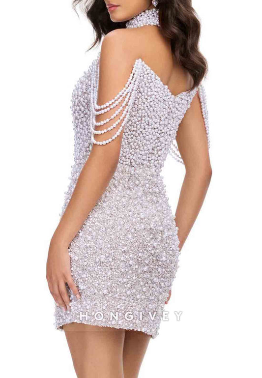 Halter Off the Shoulder Strapless Beading Sheath Mini Homecoming Dresses