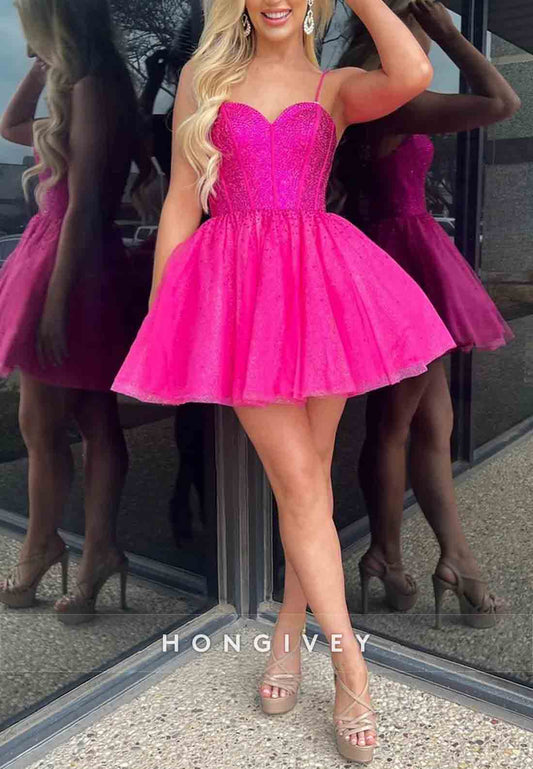Gorgeous Fuchsia Spaghetti Straps Sweetheart Beading Short Homecoming Dress
