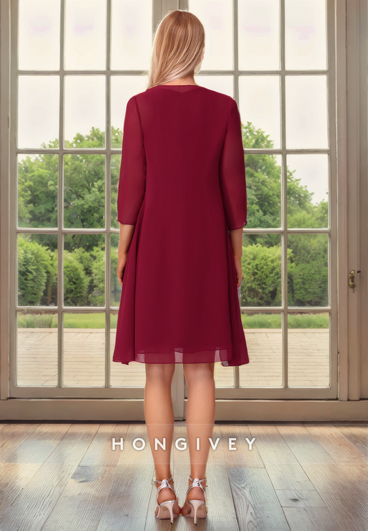Casual A-Line V-Neck With Bolero Chiffon Mother of the Bride Dress
