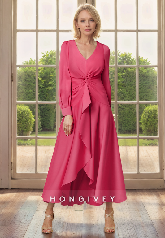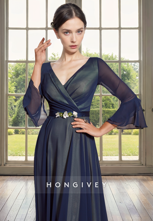A-Line V-Neck Long Sleeve Empire With Side Slit Mother of the Bride Dress