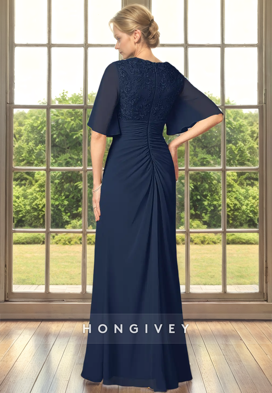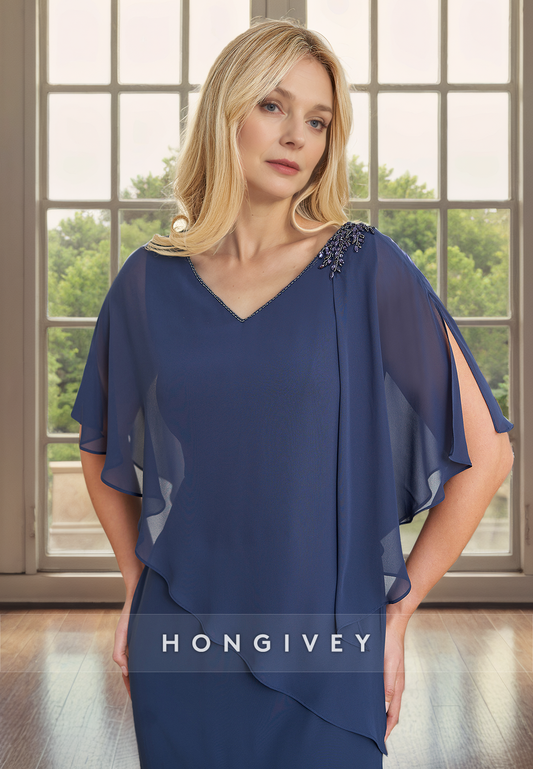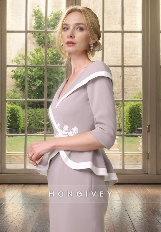 Classic Sheath V-Neck Half Sleeves Appliques Mother of the Bride Dress