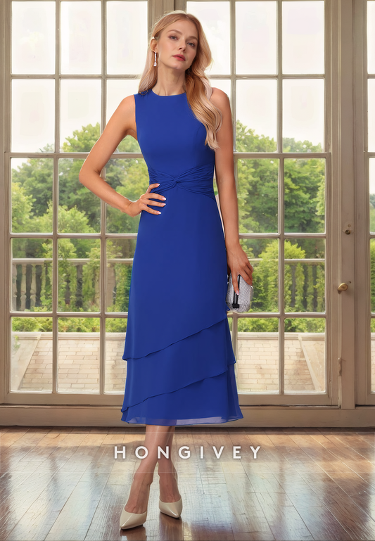 Chiffon A-Line Round Sleeveless Mother of the Bride Dress