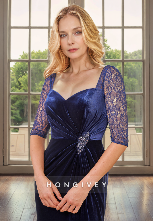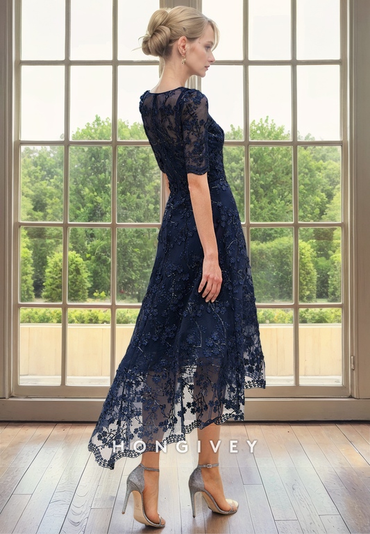 Lace Scoop Half Sleeves High Low Mother of the Bride Dress