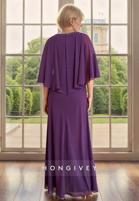 Chiffon Fitted V-Neck With Bolero Long Mother of the Bride Dress