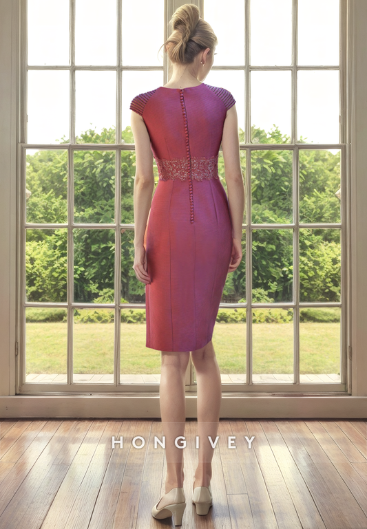 Sheath Scoop Half Sleeves Empire Mother of the Bride Dress