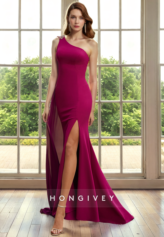 Satin One Shoulder Sleeveless With Side Slit Mother of the Bride Dress
