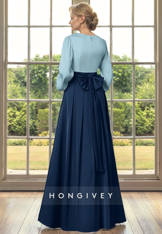 A-Line Long Sleeve V-Neck Two Tone With Side Slit Mother of the Bride Dress