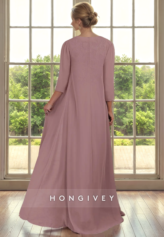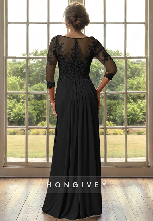 Classic A-Line Scoop 3/4 Sleeves Lace Applique Mother of the Bride Dress