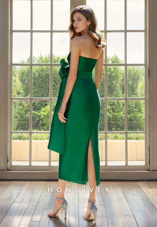 Classic Satin A-Line Strapless Puff Sleeves Mother of the Bride Dress