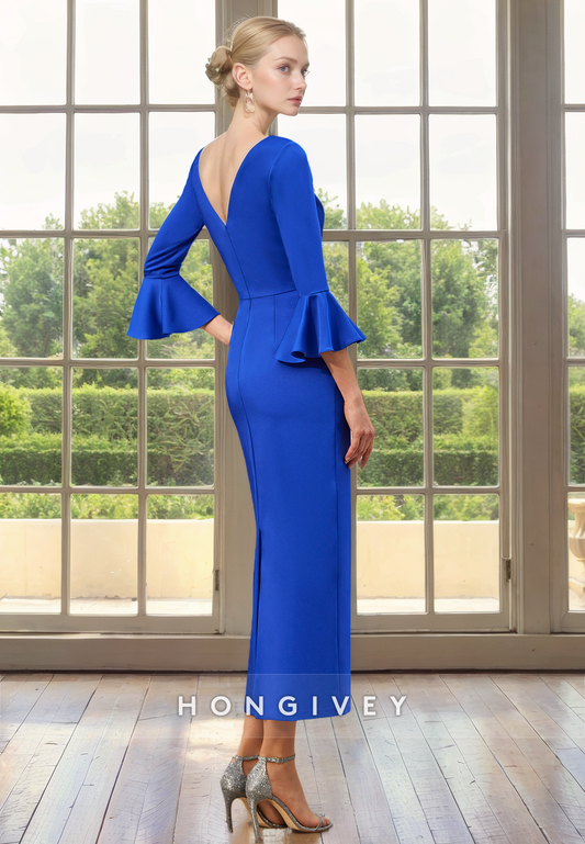 V-Neck Fitted Half Sleeves Mother of the Bride Dress