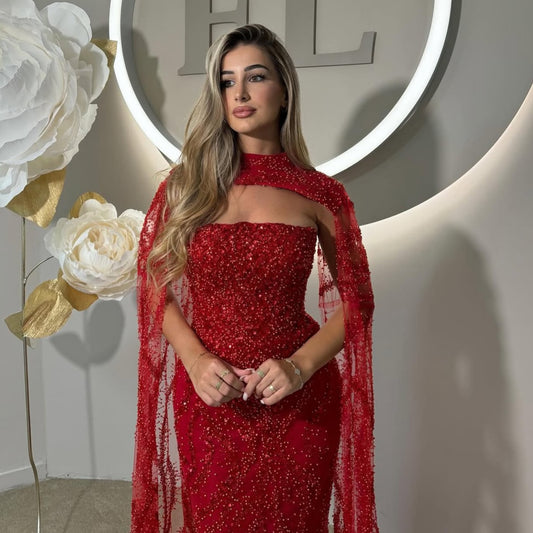 Sexy Red Halter Sleevless Sequins Sparkle Mermaid Prom Dress Floor-Length