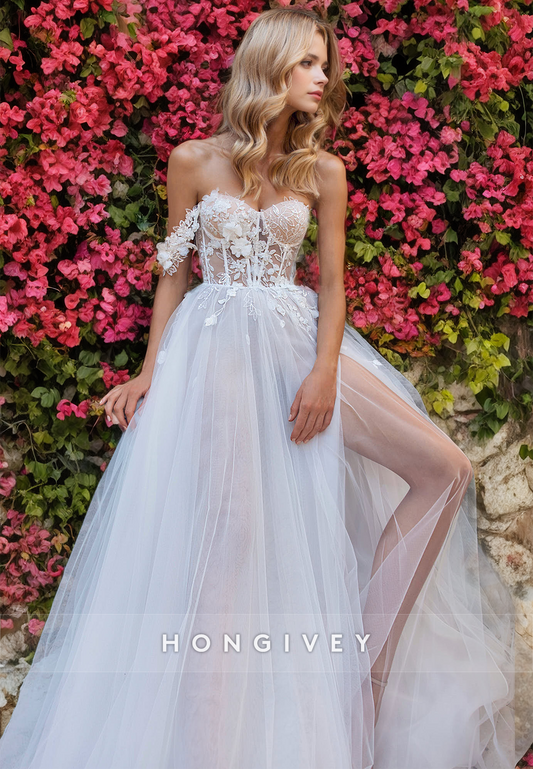 HONGIVEY Elegant Wedding Dress Bow Side Slit Off-Shoulder Sweetheart Bridal Dresses
