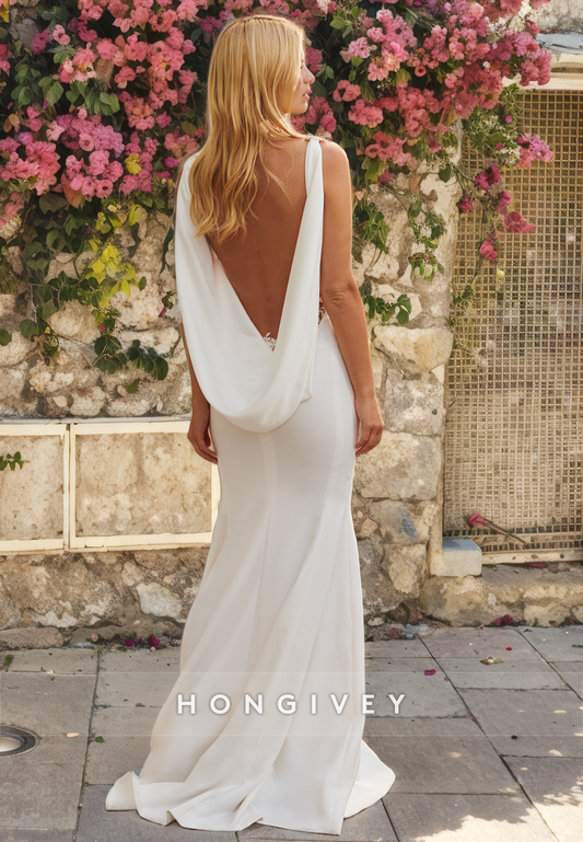 HONGIVEY Sexy V-Neck Backless Mermaid Beach Wedding Dress with Train Classic Bridal Dresses