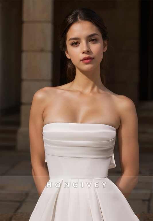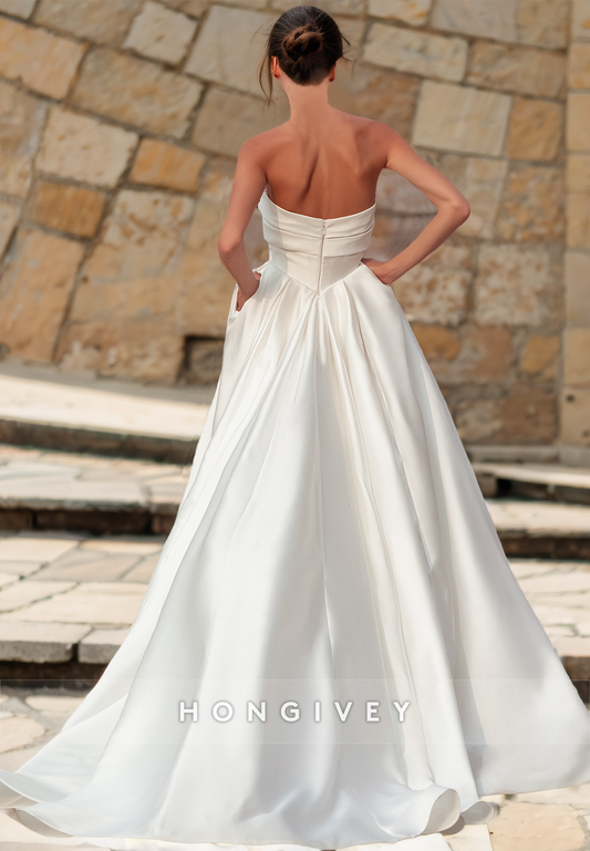 HONGIVEY Strapless Satin A-Line Wedding Dresses with Train