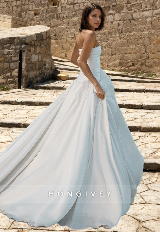 Simple Satin A-Line Strapless Sleeveless With Train Wedding Dress