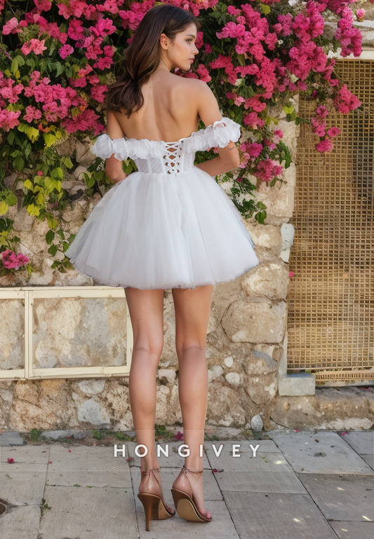 Chic Tulle A-Line Off-Shoulder Lace-Up Short Wedding Dress