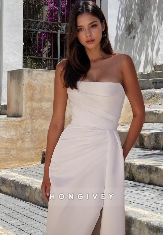 Casual Satin Trumpet Strapless With Train Beach Wedding Dress