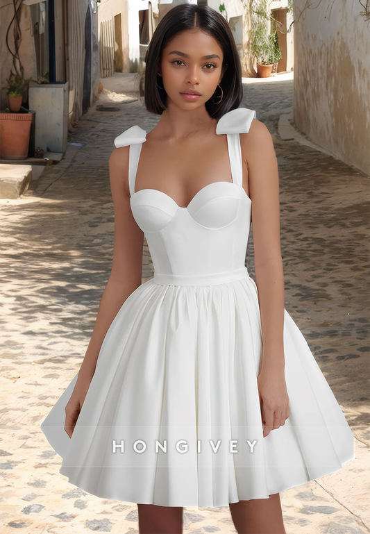 Satin A-Line Sweetheart Spaghetti Straps Short Wedding Dress