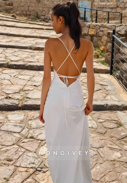V-Neck Spaghetti Straps Trumpet Beach Wedding Dress