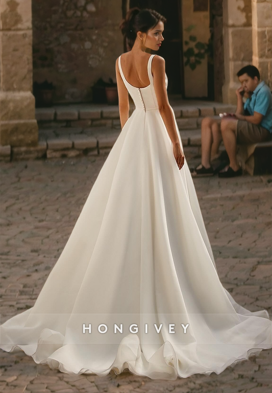 Square A-Line Spaghetti Straps Chiffon Beach Wedding Dress