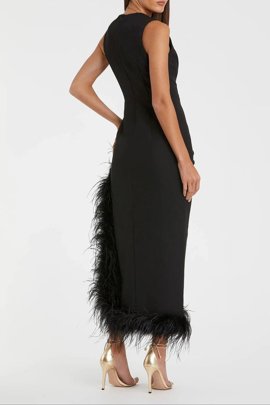 Purple Crepe Sleeveless Midi Dress With Flower Beading