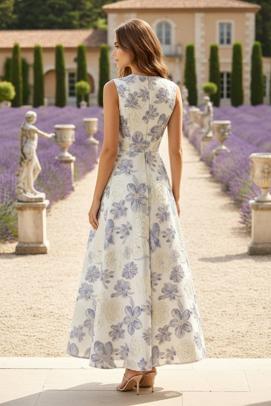 Scoop Jacquard Cocktail Dresses Sleeveless Floral Ankle-Length Flower Formal Dresses
