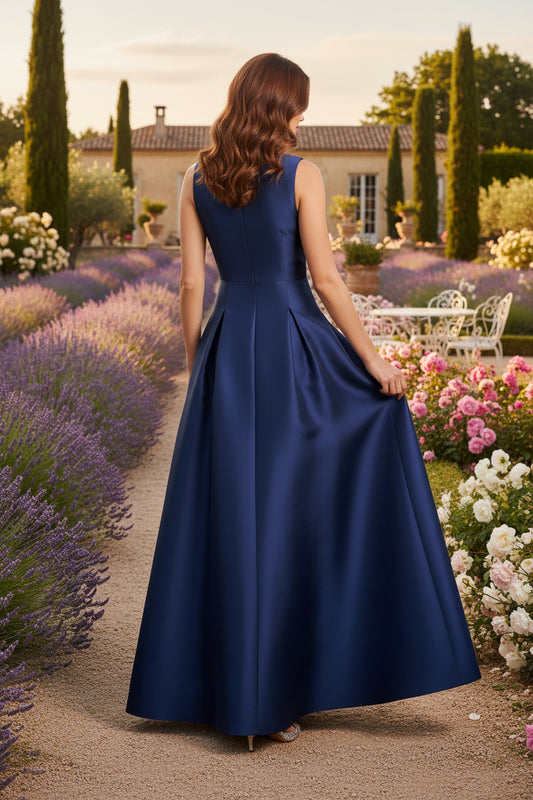 HM196 - Satin A-Line Round Sleeveless High Low Mother of the Bride Dress